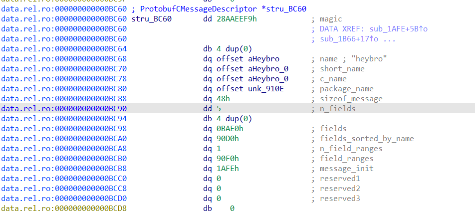 /** Number of elements in `fields`. */ unsigned n_fields; /** Field descriptors, sorted by tag number. */ const ProtobufCFieldDescriptor *fields; /** Used for looking up fields by name. */ constunsigned *fields_sorted_by_name;