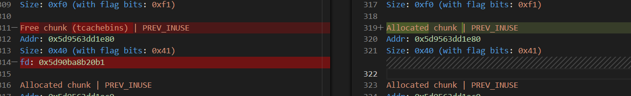 /* While bin not empty and tcache not full, copy chunks. */ while (tcache->counts[tc_idx] < mp_.tcache_count && (tc_victim = *fb) != NULL) { if (SINGLE_THREAD_P) *fb = tc_victim->fd; else { REMOVE_FB (fb, pp, tc_victim); if (__glibc_unlikely (tc_victim == NULL)) break; } tcache_put (tc_victim, tc_idx); } } #endif void *p = chunk2mem (victim); alloc_perturb (p, bytes); return p; } } // 对应的fastbin为空,检查smallbin }