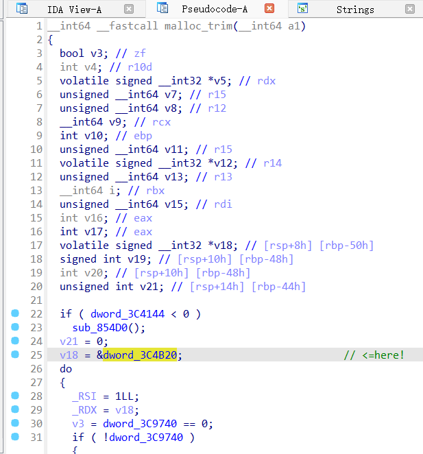 /* Set if the fastbin chunks contain recently inserted free blocks. */ /* Note this is a bool but not all targets support atomics on booleans. */ int have_fastchunks;//glibc-2.27新加的一个成员